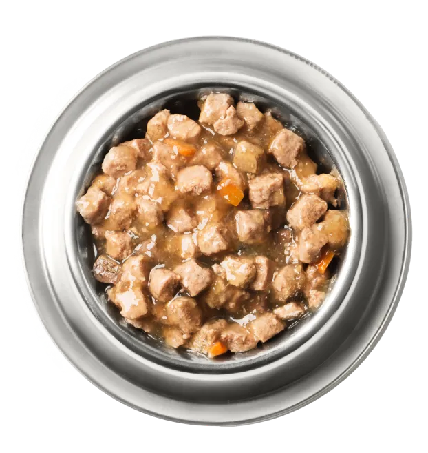 Composition: meat and animal derivatives 65% (including 10% chicken), broth, minerals.