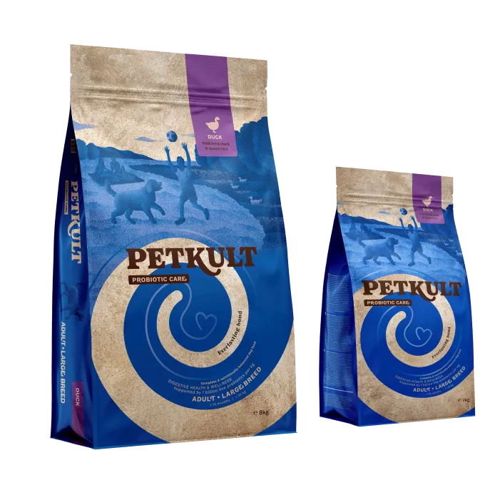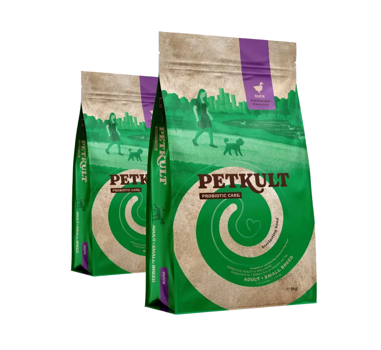 Composition: Dehydrated duck 16%, peas, brown rice 13%, white rice, fresh duck 10%, turkey fat, potato protein, hydrolysed chicken protein, linseed 2.5%, dried brewer’s yeast, carob flour 2%, salmon oil 2%, dried beet pulp, lignocellulose, minerals, dried chicory 1% (a natural source of FOS and inulin), Yucca schidigera 300 mg/kg, blend of dried herbs 300 mg/kg (Rosmarinus sp., Curcuma sp., Citrus sp., Eugenia sp.), glucosamine hydrochloride 100 mg/kg, chondroitin sulphate 100 mg/kg.