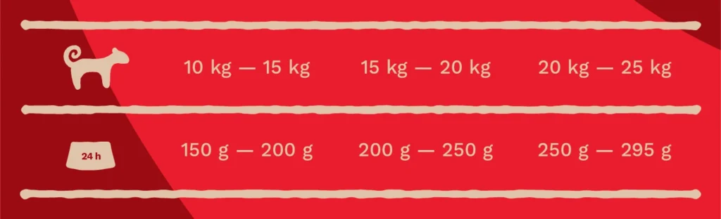 Complete pet food for adult dogs of medium breeds aged over 12 months with a body weight from 10kg to 25kg