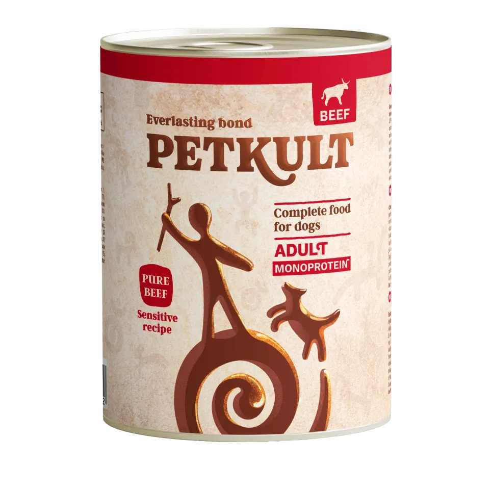 PETKULT Complete pet food for adult dogs, with pure beef and brown rice. Monoprotein formula.