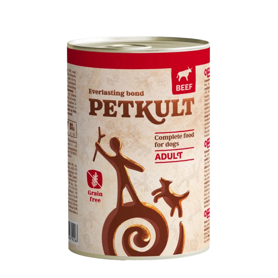 PETKULT Complete pet food for adult dogs, with beef. Grain free recipe.