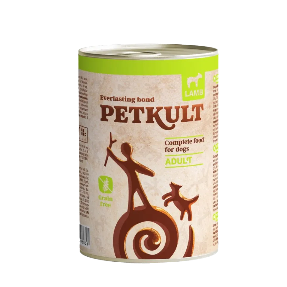 PETKULT Complete pet food for adult dogs, with lamb. Grain free recipe.