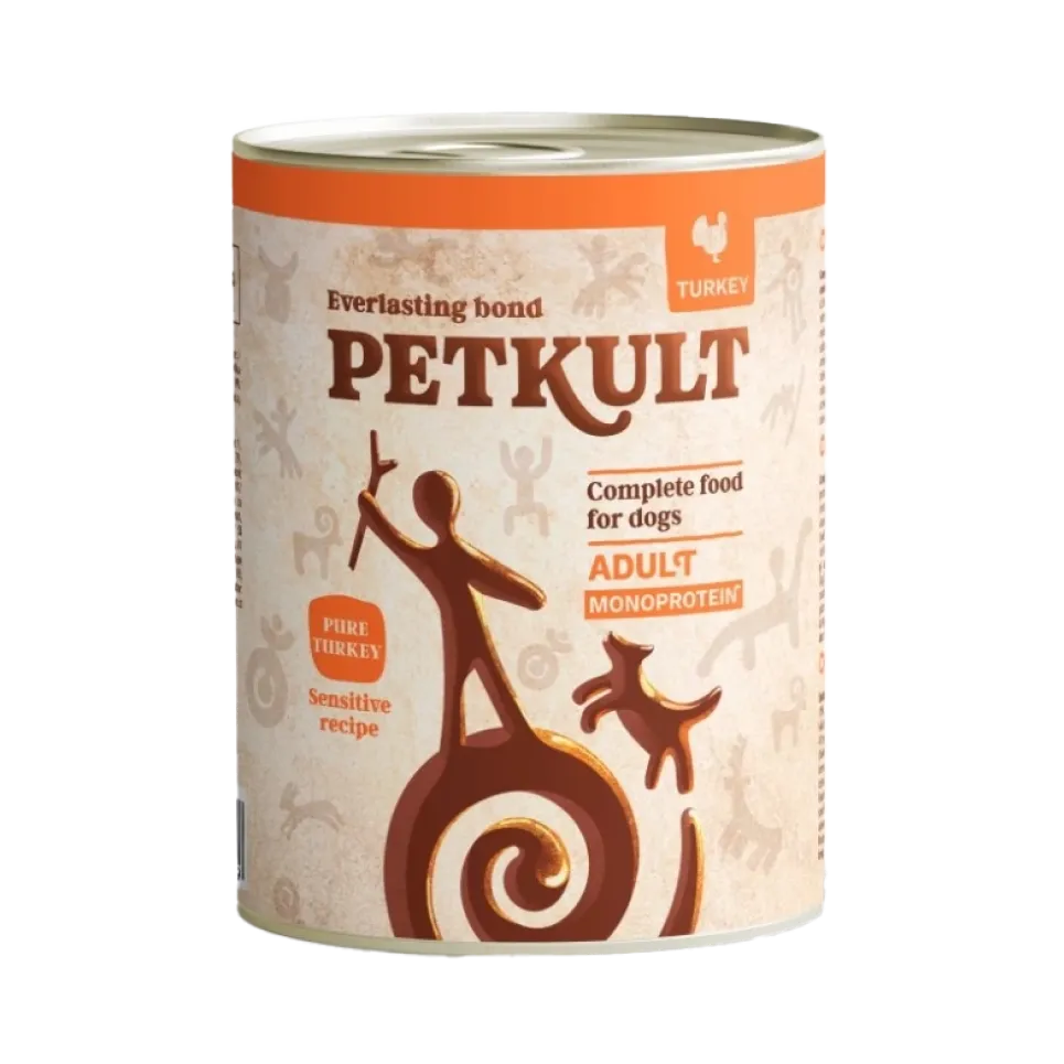 PETKULT Complete pet food for adult dogs, with turkey. Grain free recipe.